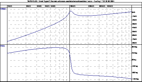 Calculated values: Frequency = 10.28Meg, Vout=150mV